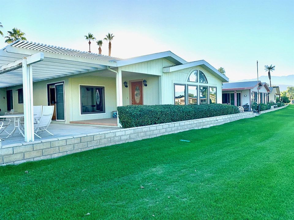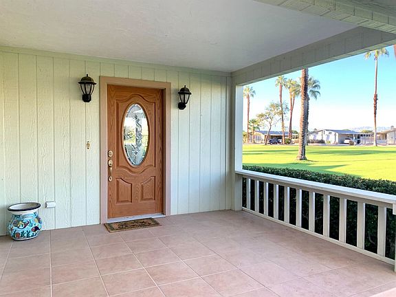 Everything you could want! Golf course and mountain view, 2 car garage, Free golf and a friendly community. This is it!!! A large 2/2 with an extra room for an office or 3rd bedroom. Beautiful golf course views from the living area, dining area and kitchen. Attractive patio with a delicious grapefruit tree, too! Plus the house comes furnished! Newer kitchen cabinets and tile floor, 1 yr old AC, new redone in 2015, alumawood patio cover and nicely maintained home. Large main bedroom and huge walk-in closet. Like to tinker in the garage No problem, there's a work area and plenty of space for 2 cars. Laundry room has a desk and plenty of storage space. There are 5 ceiling fans throughout the house. Wake up in the mornings and look out to the golf course and mountains while having your coffee - inside or outside. Portola CC has Free golf, 3 swimming pools, tennis and pickle ball courts, dog park, wifi, cable, trash and plenty of activities for a low HOA of $358. RV parking is available, also. This is a wonderful 55+ community and a great place to retire or vacation. Don't miss out ~ call now! Buyer to verify all information.