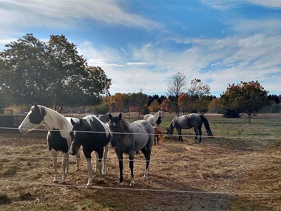 Beautifully renovated horse farm on 6 acres which are partially fenced for horses. Gorgeous vista includes large horse barn with plenty of room for pigs and chickens. Cozy yet spacious family home has five good size bedrooms, including two on the main floor and three upstairs. Two beautifully remodeled bathrooms, one on each floor. Historic charm remains with wood floors, country dining room and kitchen, and living room with fireplace. This home has many renovations including a new roof, windows, plumbing, siding, insulation, and 250' well. Very low utility bills due to recently installed wood boiling furnace, which also heats the water. Backup propane furnace; natural gas available at road. This home is near the family friendly town of Mancelona, and minutes from lakes and rivers, snowmobile trails, and Shanty Creek Ski and Golf Resort.