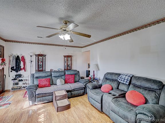 Nestled on a lush, fenced acre of land, this meticulously maintained property exudes timeless charm. The bricked exterior sets the stage for a truly captivating home that seamlessly blends functionality with beauty. A versatile shop awaits, boasting two double doors that effortlessly transform it into either a 2nd garage or workshop to suit your needs. Step onto the spacious covered back porch and be greeted by the presence of walnut and sycamore trees, providing shade and serenity in equal measure. This property has been thoughtfully designed to create a setting of tranquility amidst nature's embrace.