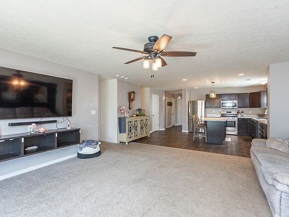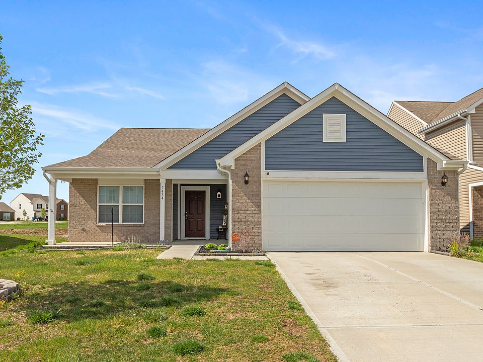 Welcome home to this charming 3-bedroom, 2-bathroom ranch located in the sought-after Camby Woods Subdivision. Positioned on a premium lot, this residence boasts a serene patio view of the picturesque pond, offering a tranquil backdrop for your everyday living. Step inside to discover a spacious and inviting layout, where the heart of the home lies in the open kitchen. Complete with a convenient center island and stainless-steel appliances, this kitchen is a chef's delight and seamlessly flows into the adjacent great room, creating the perfect setting for gatherings and entertaining. Front room offer flex space to be a home office/playroom, dining or whatever YOU want it to be. Primary bedroom offers a private bath with double sinks, a generously sized shower, and a walk-in closet, offering both comfort and convenience. Bedrooms 2 and 3 share a hall bath. Beyond the interior, the great room provides easy access to the patio and fully fenced backyard, ideal for enjoying outdoor dining, relaxation, and play. With an oversized 2-car garage providing ample storage space, this home offers both practicality and style. Convenient location near shopping, restaurants, interstate.