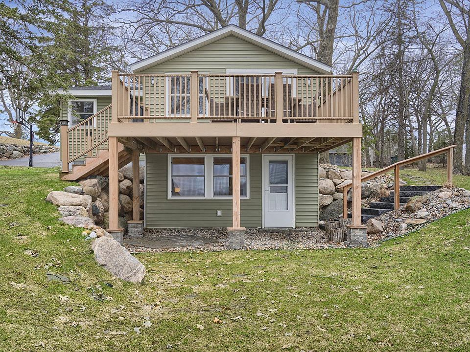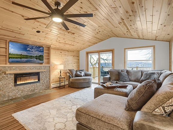 Enjoy breathtaking views of the lake from this renovated turnkey Cedar Lake year-round home. The house was taken down to the studs and given all new electrical service, can lights, light fixtures, ceiling fans + plumbing. Fresh paint throughout & 3 new windows on order for main level. The kitchen has a bright & open design. Recycled glass countertops, SS appliances, and bamboo floors throughout the main level. Attic was just spray foamed w/ blow in over it. The LL is also completely renovated, offering a third bedroom and beautifully tiled 3/4 bath. The East-facing deck overlooking the lake is maintenance-free and ready to welcome all your outdoor entertaining needs. The boat house is perfect for storing all your water toys beside another lakeside deck. Dock and a new solar-powered lift are included. Don't forget, all furniture and furnishings are negotiable, so you can truly make this gorgeous space your own with a Quick Close giving you time to enjoy Cedar Lake all summer long.