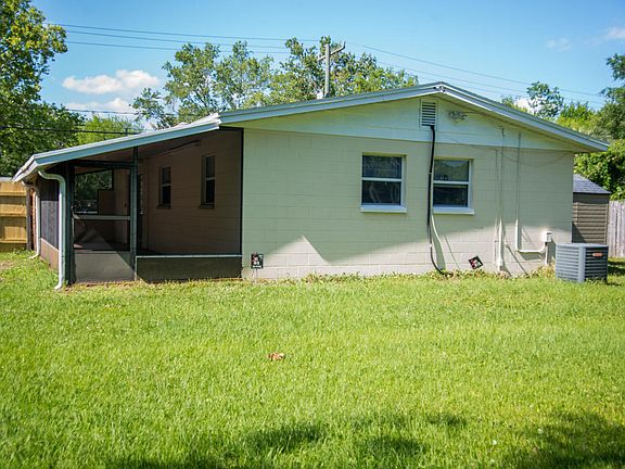 This well-maintained and newly updated solid block home is perfect for the first time home buyer, investor, or someone looking to downsize. Many updates including brand new roof, newer HVAC, updated plumbing and electric, and remodeled bathroom with tile floors and custom tile tub surround. Freshly painted inside and out, this home is move-in ready, with ceramic tile floors and solid surface countertops in the kitchen, laminate wood floors in hallway, family room and bedrooms, all new interior doors, six inch baseboards and crown moulding throughout, high ceilings, huge screened enclosure, laundry room, 1-car carport, fenced in yard and alarm system. Gas range, side by side fridge, washer/dryer and storage shed all convey. Come see this charming home today!