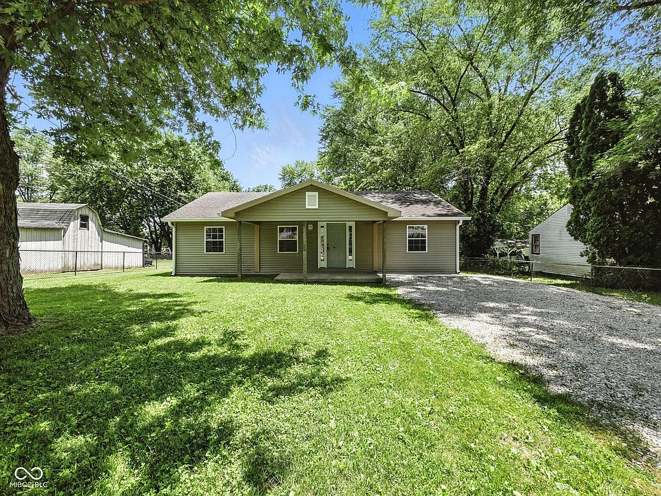 This well kept updated single-family home in Shelby County offers comfort and charm. It features vaulted ceilings in the living room, a functional kitchen with shaker cabinets, and a bedroom with a private bath. Enjoy the outdoors with a porch, patio, deck, and wooded views, plus a shed for extra storage. Sitting on a large 20,090 sq ft lot, the home offers 1,404 sq ft of living space and has been completely redone with new paint and flooring perfect for easy, comfortable living. New well, new appliances, and new water heater.