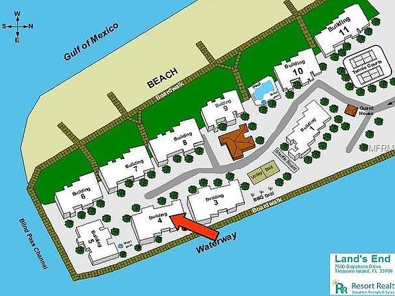 Paradise is found...Leave the Real World Behind at the Gate House of Lands End on the last 14 acres of manicured grounds on the southernmost peninsula of Sunset Beach. Here LUXURY WATERFRONT RESORT LIVING NEVER GETS OLD with 177 condos and a unique winding boardwalk that surrounds the property, endless seascapes, glorious sunsets, cool gulf breeze, the powdery sands of the Gulf of Mexico, and the Intracoastal Waterway where dolphin, manatee, sea birds, boaters, and dog beach will constantly entertain you with scenic delights. This condo is in pristine condition and offers a light and bright Florida feel from the front door all the way through to the views and sounds of the Intracoastal waterway. Land's Ends offers 7 night minimum rental restriction...Great Rental, Second Home or Primary Residence. Call for information on each. Surrounded by Water on three sides, 24 hour gated, Olympic size pool, two hot tubs, two tennis courts, sand volleyball court, shuffle board courts, cookout area with grills. Come and have fun...Condo being sold As-Is