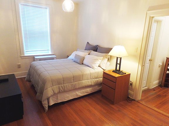 Wonderful 1 BR in the beautiful Art Deco Melrose Hall elevator building. Hardwood floors and high ceiling throughout, renovated bath and kitchen, NYC view, bus to NYC, James Braddock Park, lots of stores, restaurants, river front board walk close by. Building offers large laundry room storage units! No pets, Heat & Hot water included in rent! Can be rented with or without furniture. Broker fee applies.