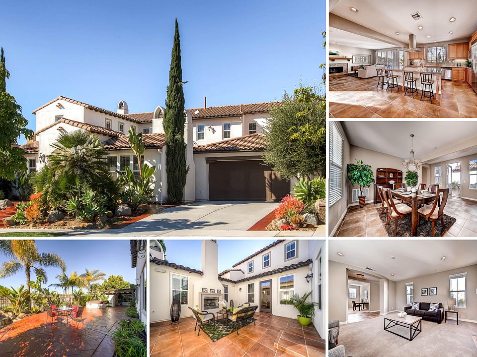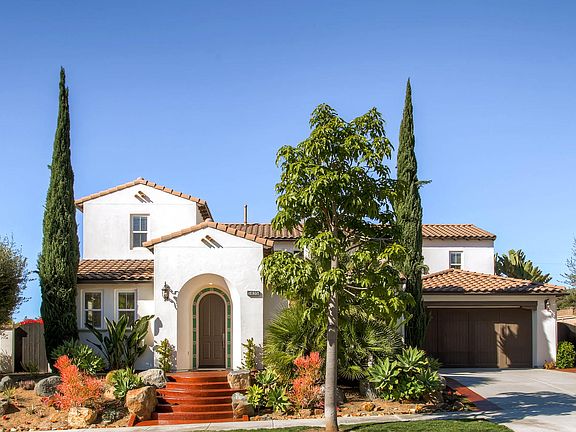 ** SALE PENDING ** Magnificent canyon view property in the desirable La Costa Oaks. Fabulous floor plan with unique inner courtyard & outdoor fireplace. First floor office+ bedroom & bath opening to the tranquil & private outdoors. This gorgeous property offers gourmet kitchen with stainless steel appliances & built-in fridge, expansive granite island, surround sound, master bath with stone flooring/counters & much more. Resort style outdoor with BBQ island, fruit trees, sauna & courtyard with fireplace! Walk to community pool/spa & recreation center...