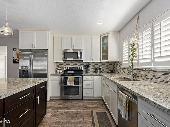 Ideal Scottsdale location with NO HOA! This wonderful home is beautifully updated with gorgeous kitchen & bathroom cabinets, granite slab counters, S/S appliances, center island in kitchen w/a breakfast bar, custom tile, a work station area, lovely plantation shutters & handsome tile flooring. ALL appliances are included & home has dual pane windows! The 3rd BR split has its own private entrance & there's even an office/den off family room that could be turned into a 4th BR. And there's an RV gate for easy access to the backyard for your toys. Spacious & flowing w/open & flexible floor plan you will love the convenient location for easy access to highways, minutes from the A/P & close to great schools, ASU, hospitals, fine dining & eateries, shops entertainment & sporting events and...