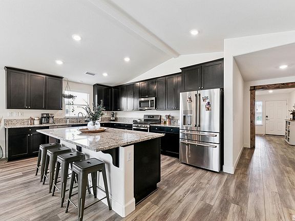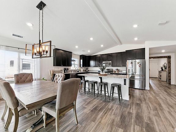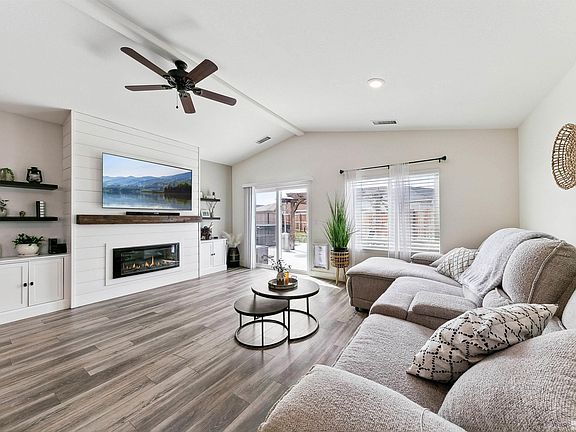 Surrounded by beautiful mountain views! Large concrete driveway to RV parking with double gate and electrical hook ups. This well thought out newer Lennar build has over $30,000 in upgrades. Single level, 4 bedroom home, with 3 car tandem garage and open floor plan. Led Lighting throughout. Added recessed lighting in bathrooms, hallways, living room. Decorative chandelier. 2 tone interior paint. Cozy modern fireplace with custom cabinetry and shelving., Upgraded LVP in entry, hallways, Kitchen, dinning and living room. Upgraded laundry room with new paint, shelving and decorative wall. Back yard landscaping with pond and some new trees. Dog run that conveniently runs from house to the exterior of home and side yard. New thermostat. New kitchen faucet. All new exterior lighting and coach lights by garage. New Window treatments. Upgraded barn door to Laundry room.