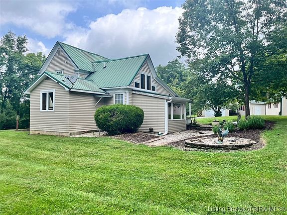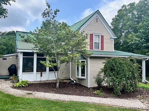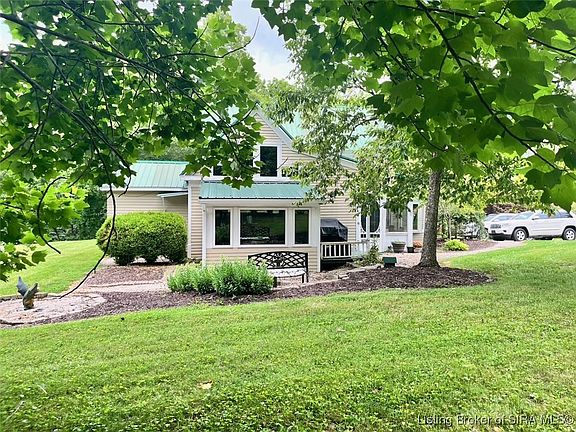 Elevate your lifestyle in this breathtakingly transformed farmhouse, now a charming chalet boasting a stunning open stairway to the second level, vaulted ceilings and an abundance of natural light. The 1st level features a magnificent Great Room, Island Kitchen, Bedroom, Full Bath with Laundry, and Breakfast Room. Discover the ultimate retreat in the Loft Area with Second Bedroom and Second Bath, accessible via the open stairway. Surrounded by captivating landscaping, this haven also features a Second Home as Log with Decks Overlooking a serene Pond with its own beach, complete with an RV hookup. A Detached Garage with Living Area on 2nd level and separate outside entrance offers additional convenience. The owner proudly declares that this incredible property sleeps 26, making it the ultimate getaway for large families or groups because of its Proximity to Patoka Lake.