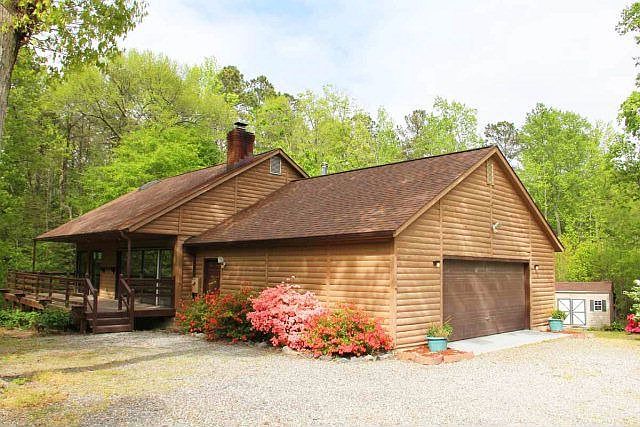 Well maintained log home in private setting. Open plan LR with wood stove & eat in Kitchen. 2 BR, 1 BA, laundry in room off 2 car garage with workshop. Gas hot water furnace, A/C unit, Hague water softener, gas water heater, landscaped with lots of plants/bushes and storage bldgs. New paint & carpet.