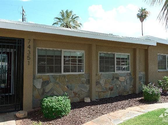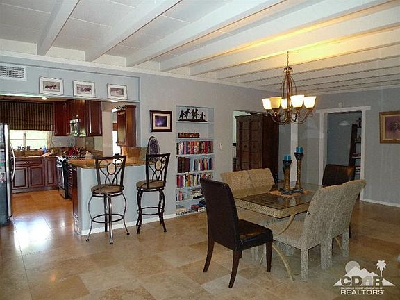 Stunning, remodeled Mid-Century home in highly desired, south Palm Desert. Walk to Washington Charter Elementary or to fashionable El Paseo for shopping or dining. Featuring 3 bedrooms (all three extra spacious and en suite) with nice separation between master and guest bedrooms, a large office with beautiful glass double door entry off of the great room, a pretty wood beamed ceiling and gorgeous fireplace. Separate family room and chef's kitchen redone to the nines with slab granite, stainless appliances and rich cabinetry. South facing backyard with sparkling pool, gazebo and mountain views. Call for your private showing today!