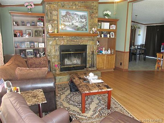 Very well maintained home with size rooms and on 1 acre within 5 miles of Taylors Ferry Area, on Ft. Gibson Lake. Open floor plan, fireplace, Walk-in closets in all bedrooms that are also nice size. Laminate Flooring in living and dining. Quiet area.