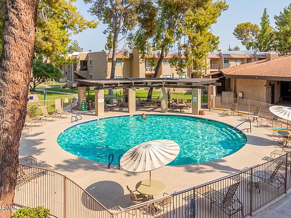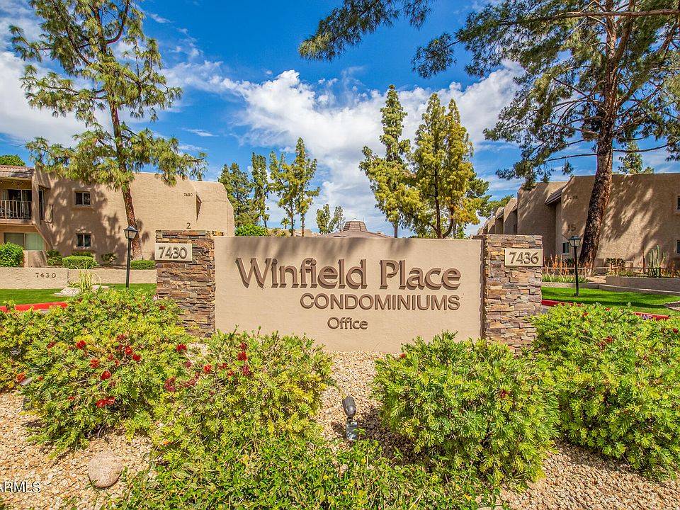 Location, Location, Location -- located in the heart of Scottsdale; just moments from all the activities of Old Town Scottsdale - museums, music, the arts, dining, Scottsdale Fashion Square mall and more. Take the free Scottsdale trolley or enjoy a walk down the paved canal way. **This 2BR/2BA ground level condominium overlooks the community green space and sets adjacent to one of the heated community pools just steps from the clubhouse.**Open and bright floor plan.** Galley kitchen with breakfast bar opens to great room. ** Spacious primary bedroom split from 2nd bedroom includes an en suite bathroom with remodeled step-in shower, updated vanity and walk-in closet**One conveniently located assigned parking space.**HOA ALLOWS WASHER/DRYER TO BE INSTALLED IN UNITS WITH CITY PERMITS.* Winfield Place community boasts 2 heated pools, spa & sauna, clubhouse with billiard tables, community event space, television, computers, on-site property management and bike house storage.