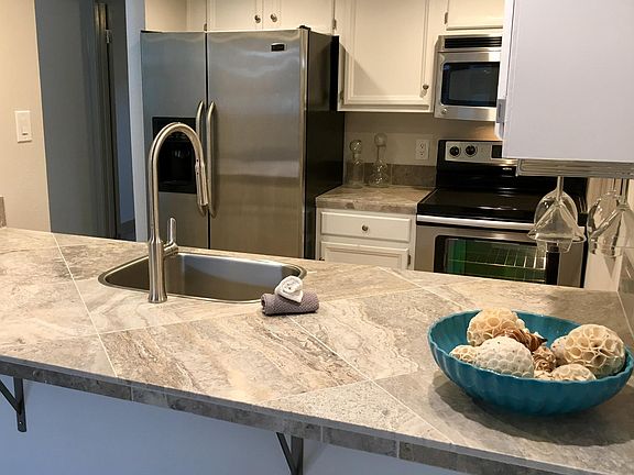 Poolside patio condo in the heart of Old Town Scottsdale, directly adj to the canal and multi-use trail...get to all the fun w/in minutes! 1st floor unit w/an open-concept plan incl a large counter-height bar area, travertine counters, and stainless appliances. Easy to care for tile floors, in-suite laundry, + a large slider leading to a tiled patio w/more storage. The bathroom has a tub/shower combo, a lit magnifying vanity mirror and extra-tall showerhead with glass enclosure. The bedroom overlooks the private pool w/ room for a Q or K bed, with a 12' mirrored organizer closet. Ceiling fans in the LR and BR, newer efficient A/C-heating unit, brand new windows & blinds to reduce noise & create a quiet sanctuary, w/1 covered parking space. Winfield Place is a prime location w/landscaped grounds, bike storage, 2 year-round heated pools, spa, various community BBQ's, sauna, a fun clubhouse with billiards, TVs, internet and game room. Deposit + $200 cleaning + $250 pet deposit. Owner pays for water/trash. Tenant pays for electrical & WiFi/cable. No smoking. No dogs allowed in complex, cat OK.