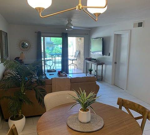 2BR/2BA Condo in walking distance to Old Town Scottsdale & Fashion Square Mall. Property can be Furnished or Unfurnished! Available for a 12 month lease term starting April 10th, 2025. Open floorpan completely remodeled with modern finishes and high-end touches throughout! Updated kitchen and sleek bathrooms. A stylish barn door provides updated privacy to the master suite with new bathroom vanity and subway tile backsplash. This unit is conveniently located steps from the canal and less than a mile from Chaparral Park. 1 assigned covered carport and other uncovered unassigned available. Community offers lush landscaping, 2 heated pools, spa & sauna, clubhouse with 2 billiard tables, TVs & computers and bike area. Washer & Dryer In-Unit! Second-Floor Unit-- Enjoy privacy, natural light and a great view! Utilities included in lease: Trash, Sewage and Water. AVAILABLE FOR 12 MONTH LEASE STARTING APRIL 10th, 2025. No smoking and no pets allowed. Call for details and questions! Property is currently furnished, but can be unfurnished if needed!