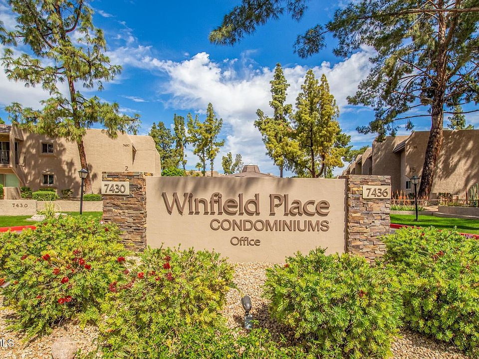 Located in the desirable Winfield Place community, residents enjoy two heated pools, a spa, sauna, a clubhouse with billiard tables, community event space, and secure, on-site storage. Enjoy your morning coffee on the south-facing patio with views of the sparkling pool and Camelback & McDowell Mountain vista views.