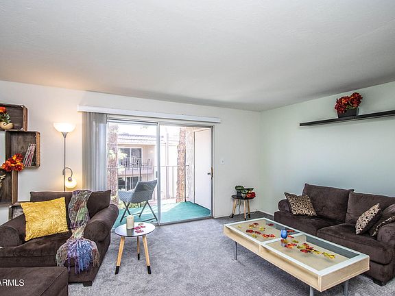 Furnished! Nicely appointed 1 bedroom, 1 bath condo in Winfield Place. This second story corner unit has lots of natural light with a south facing patio overlooking the pool and views of Camelback Mountain. Condo features new carpet in living and bedroom, new appliances, updated bathroom, and covered parking right out front. Excellent location north of downtown/ Old Town Scottsdale, Fashion Square Shopping Center, resorts, restaurants, and nightlife.
