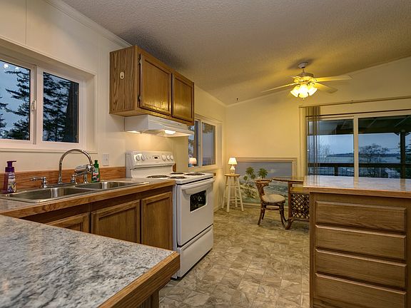 AFFORDABLE OCEAN VIEW! Bright, well cared for 1991 double wide manufactured home in popular Birch Bay beckons. Enjoy the water views and beautiful sunsets from the large deck. Open concept allows for enjoying the light and bay views from inside as well. Enjoy 2 bedrooms and 2 bathrooms, new carpet and vinyl throughout and a newer roof, installed in 2012. Easy beach access. Imagine the beach combing, paddle boarding, kayaking, whatever your preferred beach activity, all just steps from home!