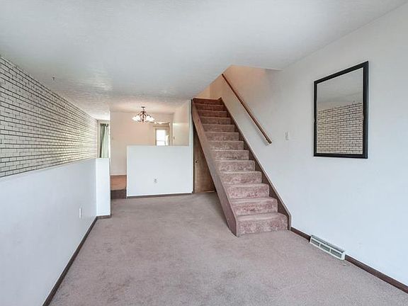 Spacious two bedroom townhome in a private setting in North Fayette Township. Large, open living room with two-story ceilings. Huge window gives lots of sunlight to the main living level. Separate dining area. Half bathroom on main level. Kitchen has a pantry and slider door to the backyard. One car garage. Updated windows. No gas, everything is electric. Central A/C. No association and no monthly fees. West Allegheny School District.