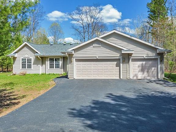Exclusive Northwoods opportunity at private Dolhun Field Airpark. For a minimal $750/year association fee, you could be a 1/15th owner & have full access to the 2,800' x 75' lighted & blacktopped runway. Blacktop access from runway to the 42'x36' insulated & finished steel hangar w/ 9'10" OH door clearance. Enjoy 1,922 sq ft of main floor living, boasting a master suite w/ private bath & walk-in closet, 2 add'l bedrooms, 2.5 bathrooms, brkfst nook & DR, & a 3-season porch overlooking the runway. Inviting open concept w/vaulted T & G pine ceiling & hardwood floors. Liv rm features gas stone FP. Unf'd lower level allows for a family room & add'l bdrms. High efficiency furnace, 2 water heaters, & newer appliances included. Att'd insulated 3-car garage provides space for vehicles & toys. Drive in or FLY in!