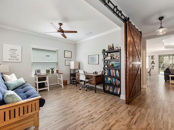 Welcome home. This 2017 Built nearly new construction Neal home is located conveniently off I-75 and calling your name. Multiple upgrades include Porcelain flooring Throughout main living areas, Crown Molding, Stainless Steel appliances, Custom built Barn Doors Ceiling fans on every room and many more.... This is a 3 bedrooms 2.5 baths with a den/office featuring a gorgeous master bedroom with walk-in closet. The open concept upgraded Kitchen has been outfitted with Granite counter tops, beautiful backsplash, Wood Cabinets, a slide in glass cooktop with dual ovens and a Gigantic Walk In Pantry with custom shelving. Step outside and enjoy the beauty of your private lot with Preserved backdrop from the extra large screened in covered patio and new brick paver extension. The Ridge at Crossing Creek is private gated neighborhood and it offers a beautiful community Pool and Spa overlooking our gorgeous 20 acre lake with Kayak launch.