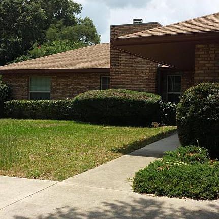 Large circular driveway welcomes you to this nice 3 bedroom 2 bath home in quiet neighborhood. Open split floor plan with fireplace, eat-in kitchen and formal dining. Unique kitchen, red appliances. Master has his and her sinks and walk-in shower. Covered lanai and screen enclosed solar heated in-ground pool perfect for relaxing and entertaining. Mature landscaping and manicured grounds. Well kept and move in ready.