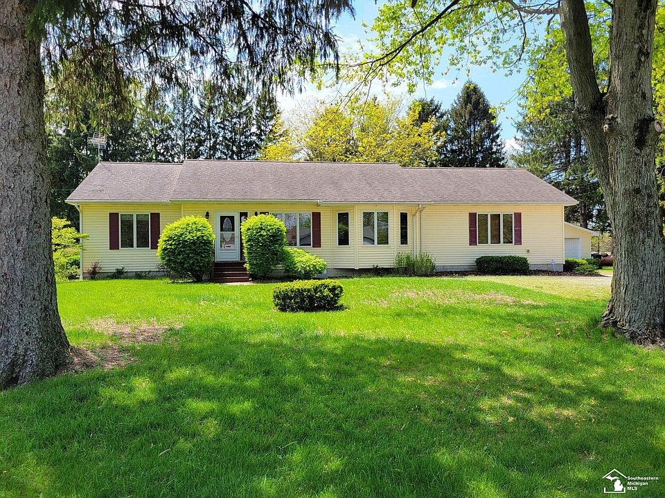 Welcome to this Beautiful 2009 Custom Built Home Situated on Nearly 3 Acres of Parklike Property! Home Features an Open Concept Layout with Stunning Hardwood Floors, Recessed Lighting and Solid Six Panel Doors Throughout. The Spacious Kitchen Boasts a Large Island, Corian Countertops, Loads of Cabinets, a Pantry and Door Wall leading to an Oversized Composite Deck Overlooking the Back Yard. Dining Area offers Custom Built in Cabinetry and Overhead Lighting. The Primary Bedroom Suite offers a Huge Walk-in Closet and Attached Bath. Additional Family Room offers Extra Living Space and you'll find Plenty of Storage in the Unfinished Basement which has 2 Large Egress Windows providing Great Potential for Customization. The Property also includes a Whole House Back Up Generator, Finished Heated 2.5-Car Detached Garage with an Attached Workshop, Ideal for Storage or Hobbies. Screened in Patio off Garage makes an Excellent to Place to Relax and Collect Your Thoughts after a Long Day! Home is close to US23 making it an Ideal Location for Commuters. Don't miss out on this Incredible Opportunity to Own a Home that Combines Comfort with Elegance!