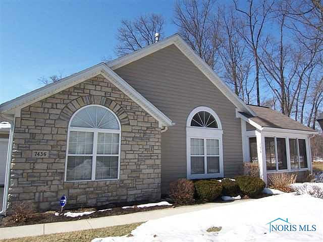 Outstanding 3 bed ranch condo in Sylvania Twnsp's desirable Timbers Edge. Open floor plan great for entertaining. Vaulted ceilings throughout, stunning family room w/fireplace, large circle top windows add lots of daylight. Patio doors lead to amazing 3 season porch overlooking beautiful wooded area. Recent carpet and paint. Walk to pool, clubhouse and exercise facility. Priced below market.