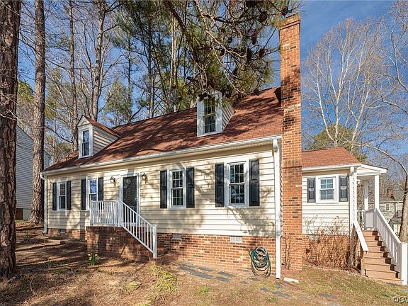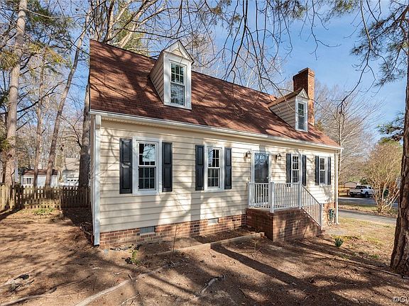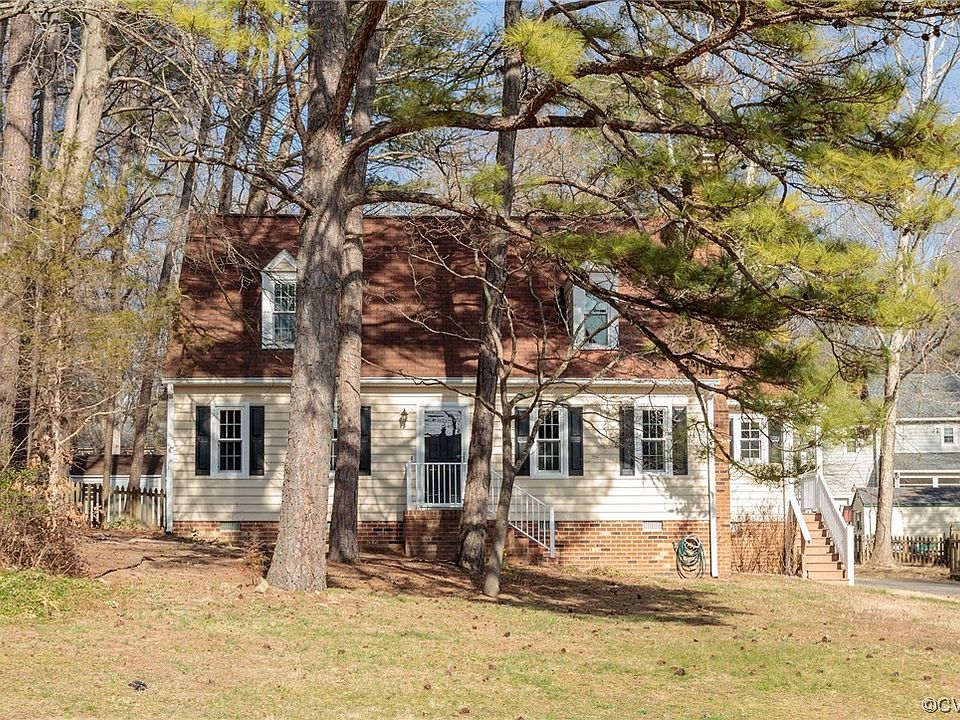 Looking for GREAT CURB APPEAL??? Check out this super cute charming cape cod in Chesterfield's highly sought after Creekwood subdivision. The unique floorplan offers a first floor primary bedroom with huge walk in closet and updated bath with tub. Two additional spacious bedrooms upstairs also have sizeable closets galore and access to a hall bath. Dramatic two story foyer greets you with large living room off the foyer featuring a handsome brick woodburning fireplace and new designer carpet. Eat in kitchen boasts dining area, hardwood floors and a bright sunroom in the rear opens onto the deck. Yard is fenced and ready for your pup! You will find fresh paint and new carpet throughout the entire house, all you need is your furniture and suitcase to move right in. This beautiful community features an amazing new pool, tennis courts and a playground, all included in the bargain HOA fee of only $600 a year!
