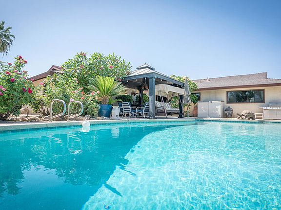 Welcome to your dream home nestled on an oversized corner lot. Enter through the front patio adorned with mature landscaping and a tranquil water feature. Ideally situated in proximity to Palm Desert High School and Palm Desert Middle School. Step inside this unique 5-bedroom, 3-bathroom home, where every detail has been thoughtfully curated. The heart of this residence is the gourmet kitchen, boasting custom cabinets, quartz counters, and a spacious kitchen island. Indulge in the modern oasis that is the backyard, featuring an inviting large Pebble Tec pool and spa where you can enjoy endless summer days and also revel in the breathtaking views of majestic mountains, creating a picturesque backdrop for all your outdoor moments. The pool and spa has recently been updated with a Pebble Tec finish and new tile. The bathrooms have been updated, where a large soaking bathtub invites you to unwind and relax. Located near the Civic Center and Palm Desert Aquatic Center, you'll find entertainment, recreation, and community events just moments away. Don't miss the opportunity to make this exceptional residence your own - a home where every day feels like a vacation, and every moment is filled with beauty and comfort. Schedule a viewing today and experience the best of desert living.