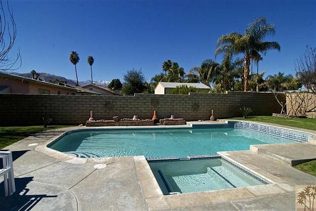 Charming, clean 3bd/2ba home just 1 block from Palm Desert Charter Middle School! There are hardwood floors in the living room and bedrooms, other areas have ceramic tile. The kitchen has electric stove, refrigerator, dishwasher, and disposal, butcher block counters. The Dining area is adjacent. The Master Bedroom Suite has a walk-in closet, ceiling fan, and large bathroom. The other 2 bedrooms are nice-sized with greenery and pool outlooks. The area in the hall off the kitchen has been turned into an office. The incredibly large backyard with beautiful and oversized pool and spa has a snow-capped mountain view! The outside patio is perfect for entertaining! Washer/Dryer in the house. There is a 2 car garage. The home is move-in ready!