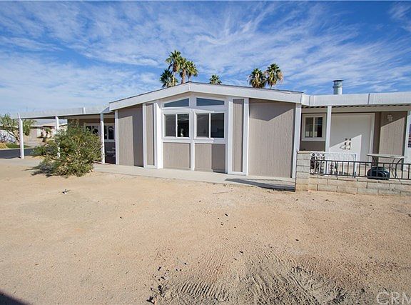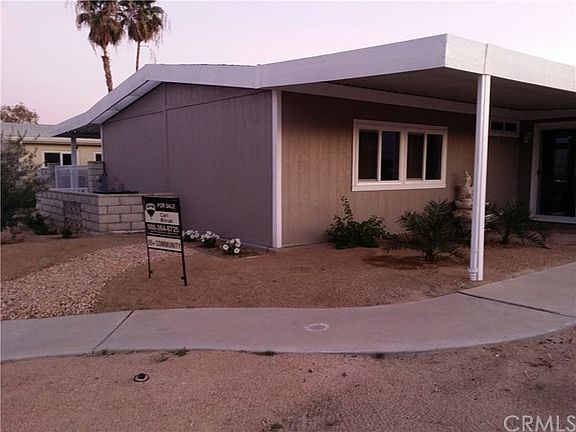 WOWIE!!! What a view for under $215,000!! Seems like a stick house!! ALL redone, plumbing, New stainless steel kitchen appliances. Quartz counter tops throughout. Six burner gas stove. Gas wall oven with lower warming tray. New flooring (vinyl planking). New roof. 270 degree views of the mountains! Nice Sunset views, in the mornings; see the red mountains to the west! High on the canyon wash with additional land that has an easement for utility access. The front side (north) has mountain views and view of a T box. Three pools, clubhouse, gym, tennis and Free golf!!! Carport is tandem for three vehicles. Fireplace, new paint in and out. Low hoa fees and gated, too! Rarely are these manufactured houses for sale in this well appointed Portola County Club. Near El Paseo, entertainment and restaurants. Concrete patios and decking. Inside laundry, mirrored closet doors, remodeled baths, vaulted ceilings. Includes washer (Frigidaire) & dryer, too.. Forced air gas heating. Newer electric air conditioner. All new dual pane energy efficient glass windows and sliding door. Track lighting. Four new ceiling fans. Cinder block perimeter fencing. Tool shed. 1,680 square feet of desert views and superb living!! Premium lot, no neighbor for 20 feet on the east side no one to the south except a direct mountain view! . Not lived since the remodel, LIKE NEW!!