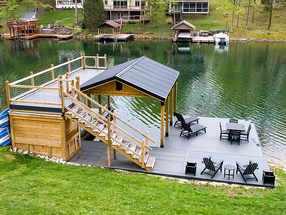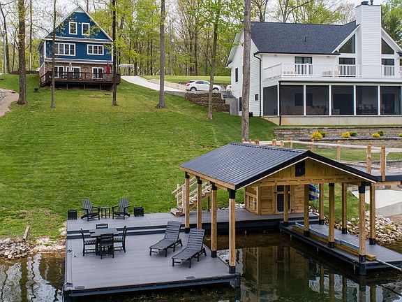 HAVE YOU BEEN DREAMING OF A LAKEHOUSE? This is it! CUSTOM BUILT in 2019, sitting on SWEETWATER LAKE in the hills of BROWN COUNTY, this home features three levels of living space with tons of storage options! NEWLY BUILT IN 2022 YOUR TWO-LEVEL COMPOSITE DOCK to house your boat with a bonus jump-off for the kids on top! This home is also being sold FULLY FURNISHED and includes all APPLIANCES including a washer, dryer, and an extra refrigerator in the basement! Lake toys included are two paddle boards and an assortment of life jackets! This home will not last long! Awaiting you and your family! MUST SEE!