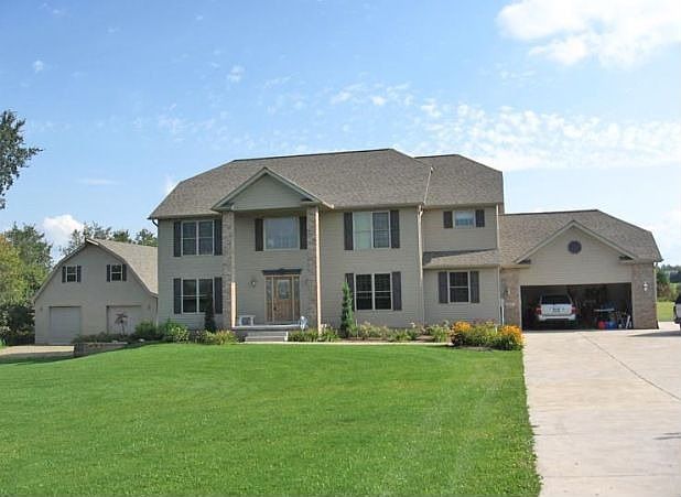 Nearly 12 acres, 3,200 square feet, a dramatic 2 story foyer and great room. Grand sized master suite w/ fireplace. Custom built with in-law apartment. Wonderful color scheme, hardwood floors, large master bedroom with fireplace. 32 X 40 pole barn.