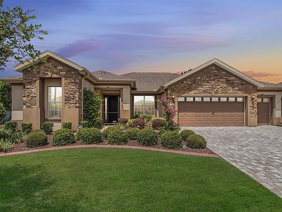 Paradise awaits in this stunning, custom-built Kingston model home with panoramic golf course views that will satisfy even the most discerning buyers. Pride of ownership, custom details, and upgrades show throughout with beautiful landscaping, paver lined drive and stacked stone exterior accents situated on a choice lot overlooking the community golf course and water views. This home features many desirable extras such as high ceilings, tile in the main living areas, recessed lighting, and crown molding throughout in an open and inviting floor plan. The elegantly appointed kitchen offers Zodiaq quartz countertops, stacked stone backsplash, solar tube lighting, and bar height seating. Plenty of entertainment space with a living room, formal dining room, casual eating area, separate library/den, and a large screened lanai offering more scenic views to the golf course.