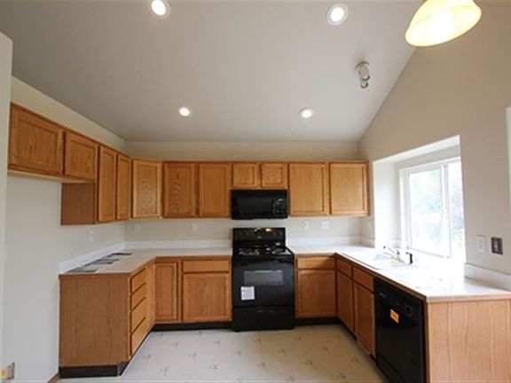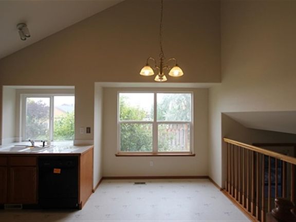 Move in ready 3 bedroom 2.5 bath plus separate living & Family room! New paint & carpet! Living room offers vaulted ceilings, plant shelves, and bayed window area. Kitchen offers plenty of cabinet space, large window above sink, canned lighting, and is open to dining area and Family room. Large Family room complete with a centered brick accent fireplace. Good size master bedroom with window seat & Dual vanities in master bath. Purchase this property for as little as 5% down! Ask your agent for details!