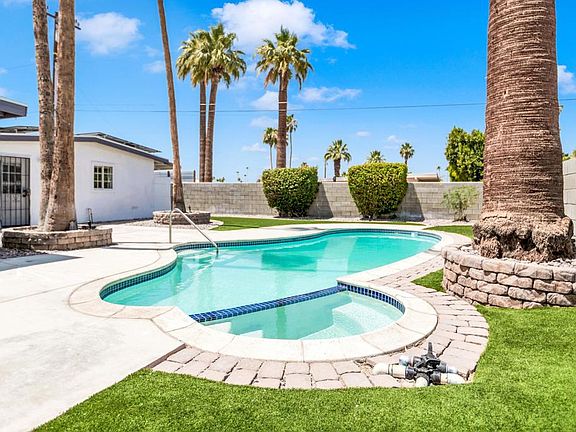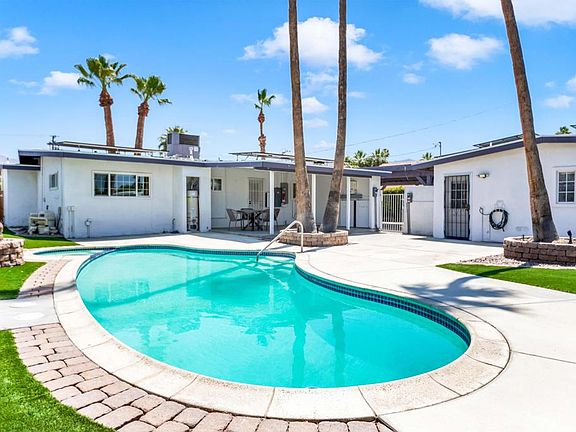 MAJOR PRICE CHANGE! South Palm Desert - No HOA! Recently added new roof and solar! This beautifully preserved mid-century modern home is the perfect blend of vintage charm with contemporary updates! Nestled in the desirable south palm desert neighborhood, It's just a short walk to El Paseo shopping district! The main home has 2 bedrooms, 2 bathrooms, a spacious living area that offers an open concept for dining and entertaining. The main home updates Include quartz countertops, stainless steel appliances, walk in showers, woodgrain luxury vinal plank flooring. Beautifully updated backyard with low maintenance landscaping, artificial turf surrounding the pool & spa! The pool is set in the perfect position to have mostly full sunlight all day long, and you can take advantage of the covered patio for shade and outdoor dining! The separate guest house offers a full living room, kitchen, bedroom, and bathroom, brand-new walk-in shower! Main home was just updated with all fresh interior paint, and newly installed leased solar! This home is priced to sell and won't last long!