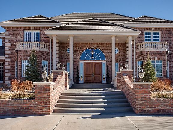 Panoramic Front Range views from this exceptionally private sanctuary positioned on 3.31 acres at the end of a cul de sac with gated drive. This classic two story red brick traditional is the perfect family & entertaining home. Two main floor studies off the 2 story entrance. Formal dining with wainscoting, west-facing bay window and butler's pantry leading to the chef's kitchen with warm wood cabinetry, two islands, top-of-the-line appliances + breakfast with bay window looking to the private backyard, sports court, pool & pool house. Adjacent 2 story family room with stone fireplace also enjoys backyard views + access to the vaulted covered patio with impressive woodwork, beams, dramatic brick columns & outdoor fireplace. Seven bedrooms including main floor master suite, 2nd master suite and 4 additional en suites on the upper level, along with bedroom and 4 piece bath in the walk-out level. Walk-out also features media room, full bar, billiards area and French doors to the backyard.