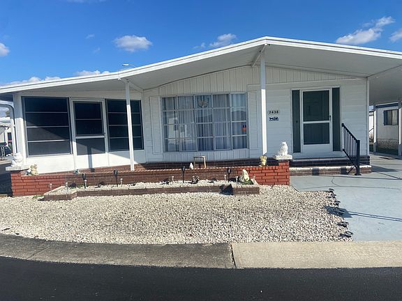 This beautiful spacious home has 2 bedrooms, 2 baths, a carport, a sunroom, a porch, a dining room, laundry room. The master bedroom has its own bath, is huge, and holds a king-size bed with plenty of space. All furnishings and appliances(fridge, oven, range, dishwasher, disposal, microwave, washer, and dryer) are included. Everything from top to bottom has been well taken care of and is VERY clean. The carport area has plenty of room to create a spacious outdoor living space and still have room to park. The roof was done 6 yrs ago, the AC unit is 6 yrs old, new flooring was 2 yrs ago. This home is located in Sunshine Lake Estates in New Port Richey. This park is clean, well maintained, pet friendly, and allows renting, pool, activities, a lake and so much more. The lot rent is around $760(including lot, water, sewer, pass-through tax, and trash). This "move-in ready" home is located on a corner lot. This place is a "must-see" and will not last long. Give us a call today. All listing information is deemed reliable but not guaranteed and should be independently verified through personal inspection by appropriate professionals. Integrity Mobile Home Sales cannot guarantee or warrant the accuracy of this information, measurements, or condition of any property. Measurements are approximate. Lot rent is subject to change.