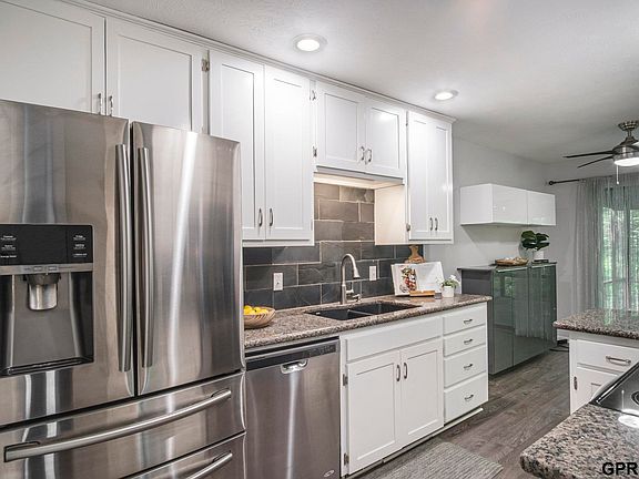 Welcome to this updated tranquil home. Upon entering you will notice updates throughout; spacious rooms, dining area with extra cabinetry and a basement waiting for your finishing touches. Enjoy having no rear neighbors, mature trees, a large enclosed patio and a deck perfect for relaxation. The garage has some custom work done to it and a storage space attached. The perfect blend of city and seclusion, close to the interstate and short drive to downtown Omaha.