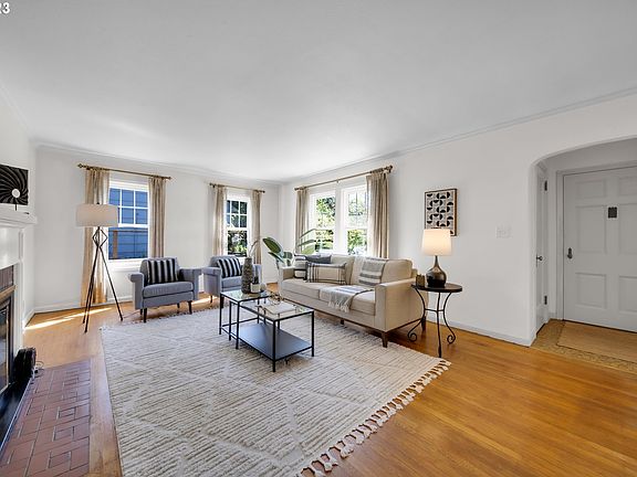 Sunday (11-2) Welcome to this sweet cottage on an extra large corner lot w/detached garage, lovingly cared for by generations of the same family for 66 yrs. Charming period features include arched entries, original doors and hardware, and oak hardwoods on the main level. Big double-paned vinyl windows let light stream into the formal living rm w/fireplace and dining rm with built-ins. Kitchen w/eating bar has loads of cabinetry and built-in pantry, all w/pull out shelving. You'll also find 2 generous bedrooms and a bath on the main. Upper level w/fir floors makes a great 3rd bedroom or bonus and office or workout space. The basement, completely dry, partially framed with good ceiling height and an egress window, just begs to be finished. Private fully-fenced backyard with deck, covered patio, and garden shed has 30+ varieties of mature plants and flowers, plus raised beds awaiting your vegetable garden. Truly a gardener's paradise. Just 1.5 miles to Adidas, Univ. of Portland, or fun St. John and Kenton shops and dining. [Home Energy Score = 2. HES Report at https://rpt.greenbuildingregistry.com/hes/OR10214635]
