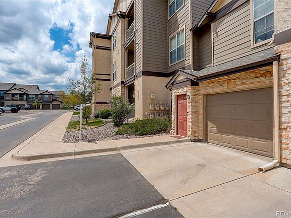 Nestled in the Fallingwater community, this furnished Carriage House Condo offers a prime corner location behind the gates. On the second floor, it features ample natural light through large windows and a French door leading to a spacious patio. Inside, you'll find an open layout perfect for gatherings, including a welcoming entryway, oversized living room, and generous dining area. The primary bedroom is a tranquil retreat with an adjoining bathroom and walk-in closet. Outside, amenities include a clubhouse with a swimming pool, hot tub, fitness center, and outdoor grills. The clubhouse is currently being renovated and will feature all brand new amenities. Nearby Eagle Meadows Park offers outdoor enjoyment, while essential amenities and C-470 are a short 10-minute drive away. This unit is one of the rare opportunities in Fallingwater to own a private, attached garage and is in a prime corner location next to a protected stork sanctuary. The grounds offer a waterfall, rivers, beavers, rabbits, and all sorts of other wildlife right outside your door!