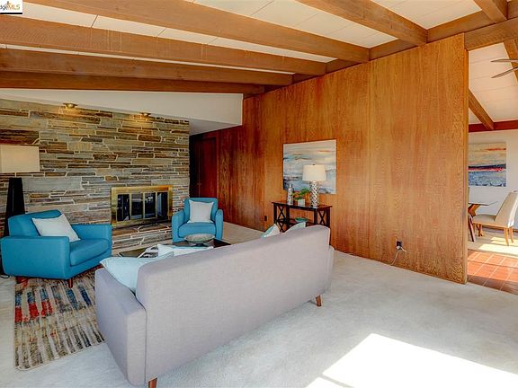 Fabulous Original Mid Century, built in 1962, by Builder Don Deming. Breathtaking views from Living room & 3 of the bedrooms. Beautiful Open beam ceilings. All Level In. Some cork floors. Large efficient Eat in Kitchen w/ dining area has access to rear patio and raised planting beds. Basement hobby room gives extra bonus space! Quiet Cul de sac location, with open land across the street. Very quiet & private. Newer roof 2018, freshly painted inside & outside. 2 car attached garage with new garage door. Great opportunity to refresh & modernize this wonderful mid century! Close to Schools, EL Cerrito Swim center, Hillside Natural Area, Hiking trails and transportation!