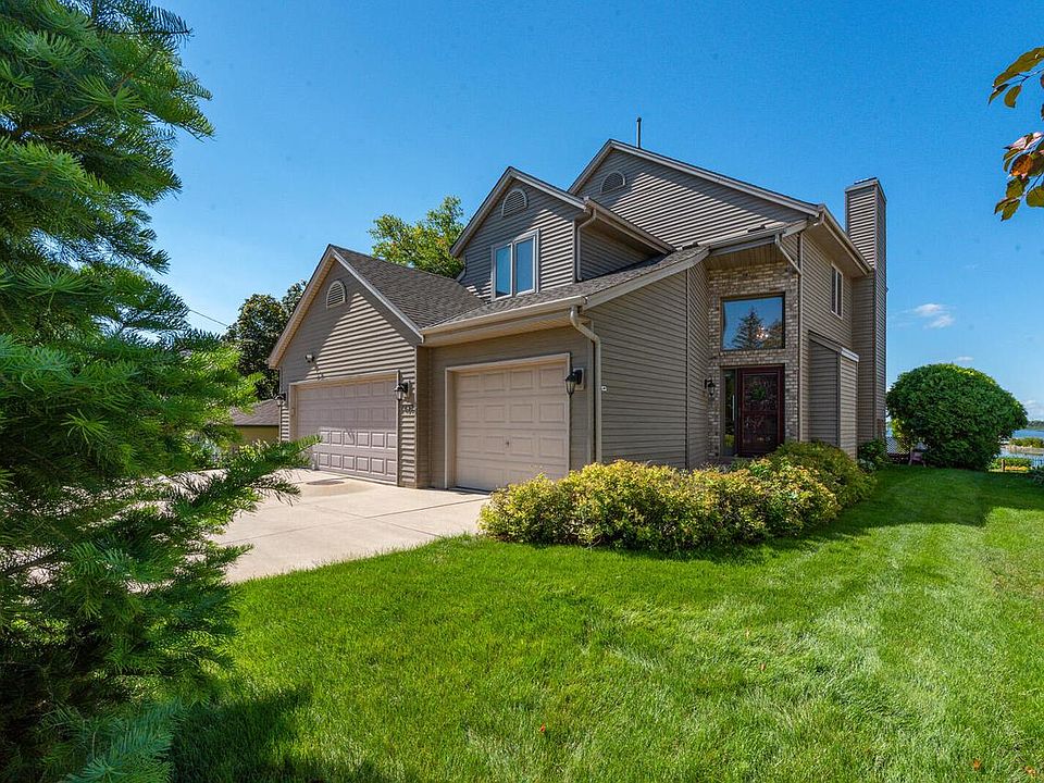 Spectacular home on Wind Lake. Breathtaking Views, Beautiful Sunsets, Boating & Fishing right from your Pier. 2 Story Foyer w/open stair case, Large Great Rm W/Fireplace & oversized windows overlooking the Lake, Chef pleasing Kitchen w/Center Island, Quartz Counters & Bayed Dinette. The 1st floor Den & utility room (used as 5th bedroom) has 1st Floor Bath w/walk in shower that has ele heated tiled floors. MBR has Cathedral Ceilings, Walk in Closet & Patio Doors to Balcony W/views of Lake. Instant hot water for both upper baths & kitchen sinks, 17 windows facing the Lake. Newer furnace & AC. New Wood Decking, 4 person Hot Tub, 10x12 storage Shed. In ground Sprinkler system. 4 season Pier/Private Dock. Entertaining is a pleasure you will enjoy for Generations! House is NOT in a Flood Plan.