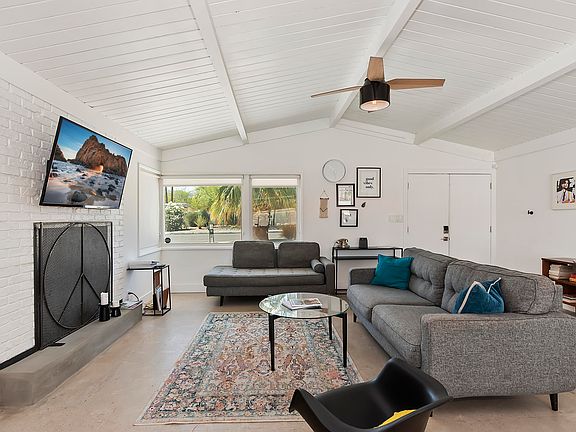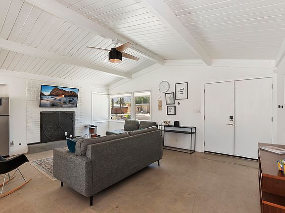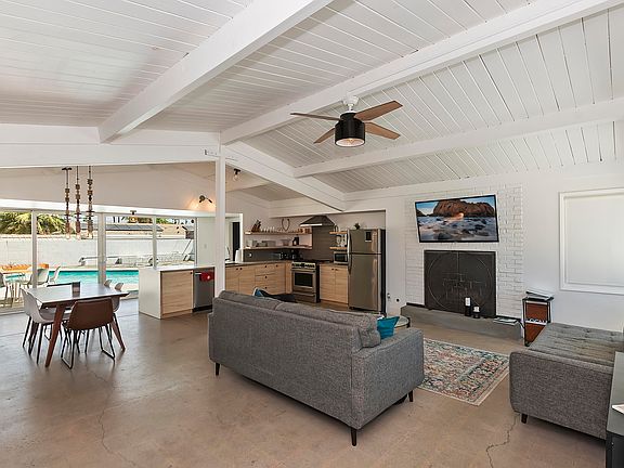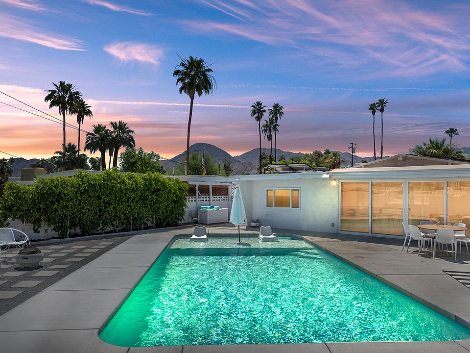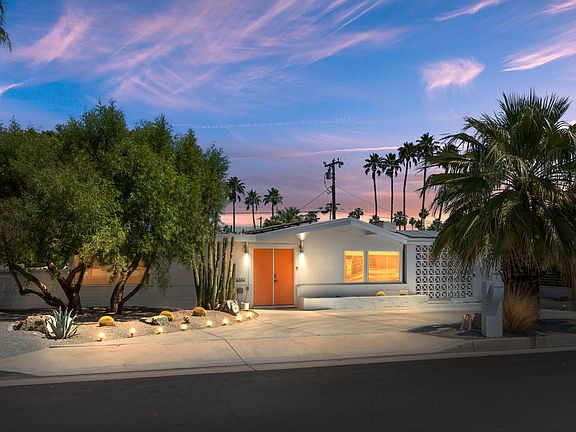 Price Reduced! Beautiful Mid Century Modern Home. The Mid-Century architecture and character is complemented by modern updates. Located on a quiet street, this home features a newer kitchen with stainless steel appliances, newer windows and sliding doors, remodeled baths, and cathedral ceilings. Enjoy the open floor plan which is prefect for entertaining. Modern and Green amenities include newer tankless water heater, mini split 5-unit AC, Complete roof coverage, owned (financed) solar, updated electrical panel. The living area opens to the outside onto a large backyard where you'll enjoy the large sparkling pool (fully renovated in 2019, re-tiled/re-piped/re-plastered) with new gas pool heater, custom wood deck, outdoor Bluetooth sound system and beautiful mountain views. Situated in highly sought after South Palm Desert, just blocks from El Paseo, fine dining, shopping, and Washington Charter School. Amazing indoor/outdoor living lifestyle can be yours!