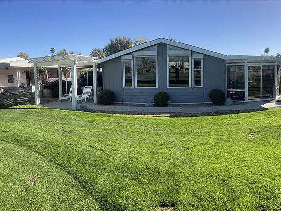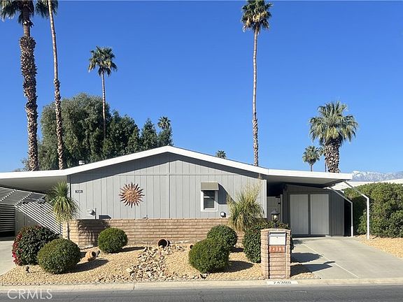 Palm Desert, Portola Country Club, On the 18th tee with one of the most scenic VIEW locations in Portola! 1,488sf living/4,792sf lot, Two Bedroom / Two Bath, Updated thru-out, Open Floor-plan. Plus an attached Sun Room. Perfect for get-a-way or full time living. Turn-Key, furnished home, is beautifully decorated, cozy Living Room and Dining area with large picture windows facing views! Large Kitchen w/center Island. Separate Laundry Room. Primary Bedroom at rear of home, private Bath w/walk-in Shower. Home includes Custom shades, Dual Pane windows, Exterior electric storm shutters, Ceiling fans. Exterior; Two covered patio’s, Plenty of Covered parking, Plus Golf Cart w/ golf cart garage, Fruit tree’s, short walk to Clubhouse and Pool. Community offers; 18-Golf and Putting Green (Golf included w/HOA fee!) 3 heated Pools w/Jacuzzi’s, Tennis court, Pickle Ball courts, Bocce Ball courts, Dog park, RV Parking available, Club House incl Pub, Billard Room, Library, large Dining facility. 55+ Community, Low HOA! Important to note YOU OWN YOUR LAND! Close to El Paseo, Restaurants, Shopping, Eisenhauer Medical Center and future Disney development.