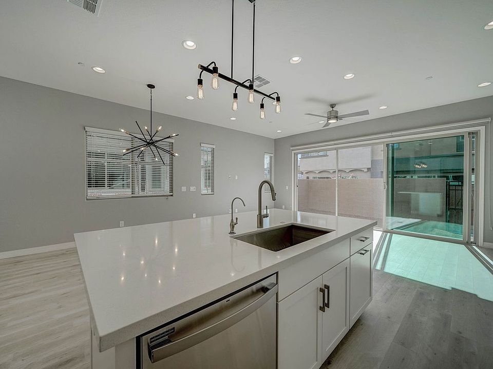 This brand new, trendy home was just built and has a modern, minimalist vibe and neutral colors throughout. Walk into a large, open living space and kitchen with a huge island and brand new stainless steel appliances. This gorgeous kitchen with crisp, white countertops and cabinets is the perfect place to gather. The large sliding door and windows make it feel very open and airy. There is a private side yard that is very low maintenance. All the bedrooms have brand new carpet. Master bedroom has a huge walk-in closet, dual sinks and a gorgeous, glass-enclosed shower. The cherry on top is the private. rooftop patio to take in the beautiful Arizona sunsets! There is also an attached, 2-car garage. Take advantage of everything this gated community has to offer including a pool, spa, pool-side ramada and fitness center.