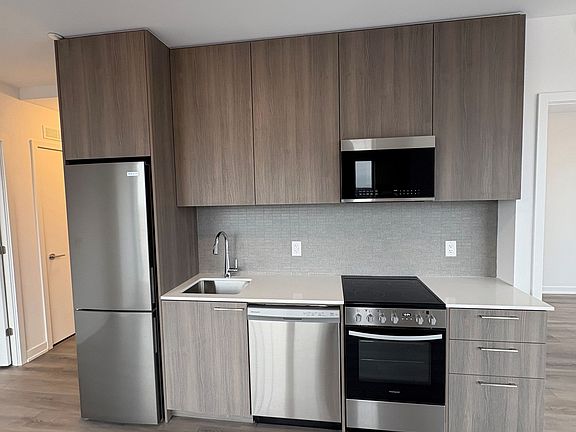 Functional layoutUnobstructed park viewExtra high ceilingsLaminate flooring throughoutModern kitchenStainless steel appliancesQuartz countertops