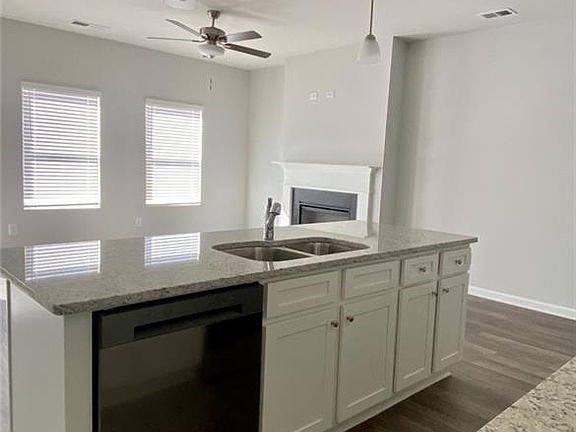 - Features: Cabinets Other, Kitchen Island, Pantry, Solid Surface Counters, Stone Counters, View to Family Room