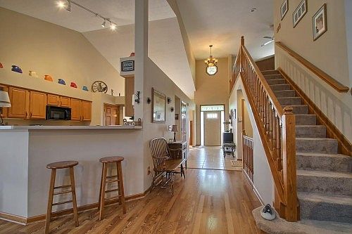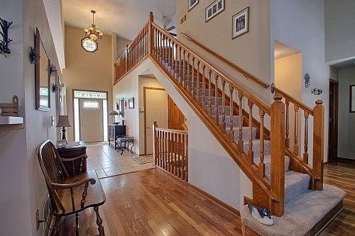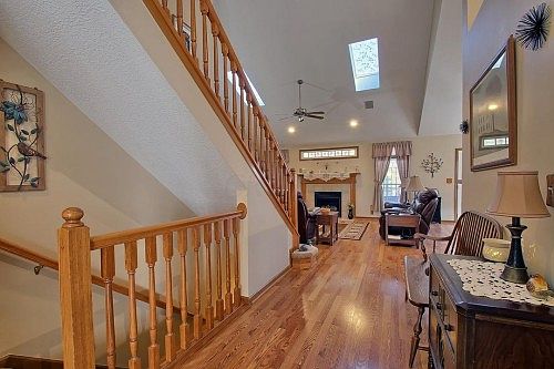 Extra large two story with 1st floor owners suite, 1st floor laundry, 2 fireplaces, beautiful wood laminate on 1st floor. Large open great room, kitchen and eating area. Great teen or in-law suite in the lower level with egress window, bedroom, full bath, rec room with pool table,family room,den and storage room with built in shelving.Spacious second floor with large loft, x-large bedrooms and full bath. 6 panel doors, vaulted ceiling, bay window, sound and security system. Large deck overlooks treed reserve, large brick paver patio. 3 car garage and much more. Home is on a cul-de sac with minimal traffic.